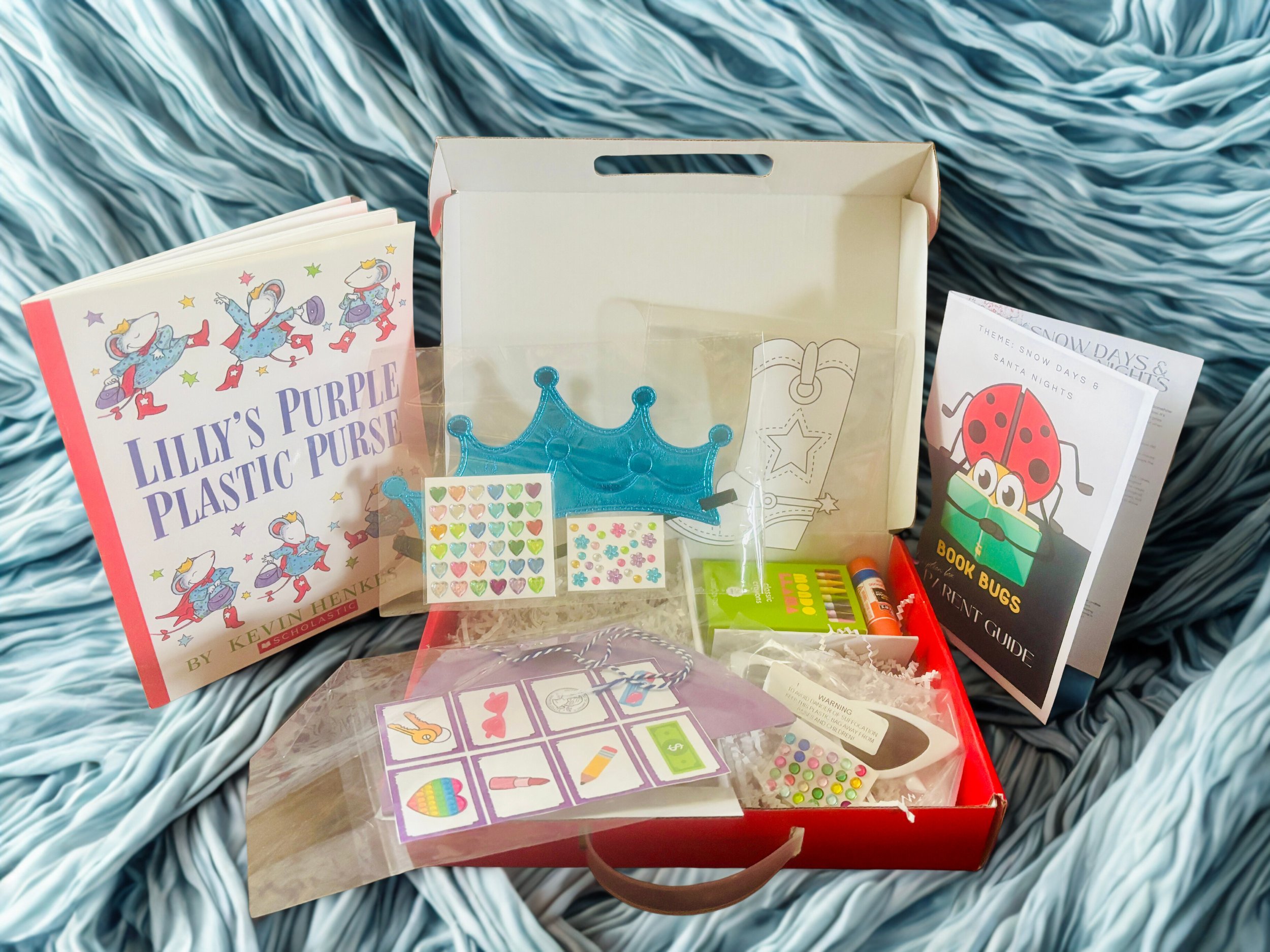 Included in your box is your selected book, a themed craft to correspond with the book, a parent guide to help walk your kiddos through the program, and fun supplementals.