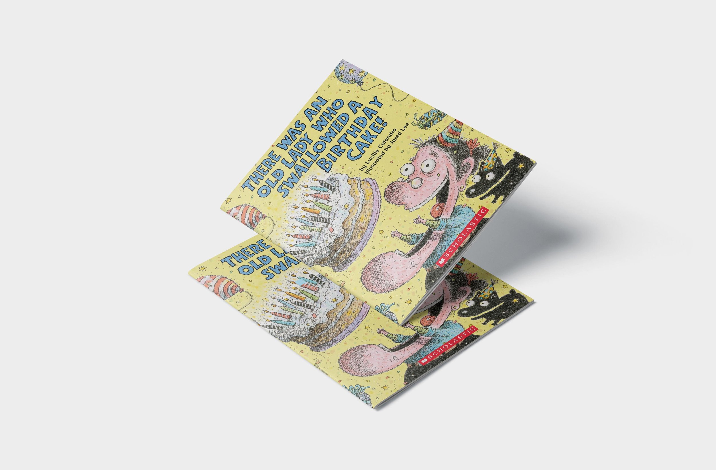 There Was an Old Lady Who Swallowed a Birthday Cake by Lucille Colandro (illustrated by Jared Lee) is a humorous, rhyming board book for young children. In this birthday-themed installment of the popular series, the lady swallows items like a cake, candle, balloons, and confetti to prepare for a surprise party.